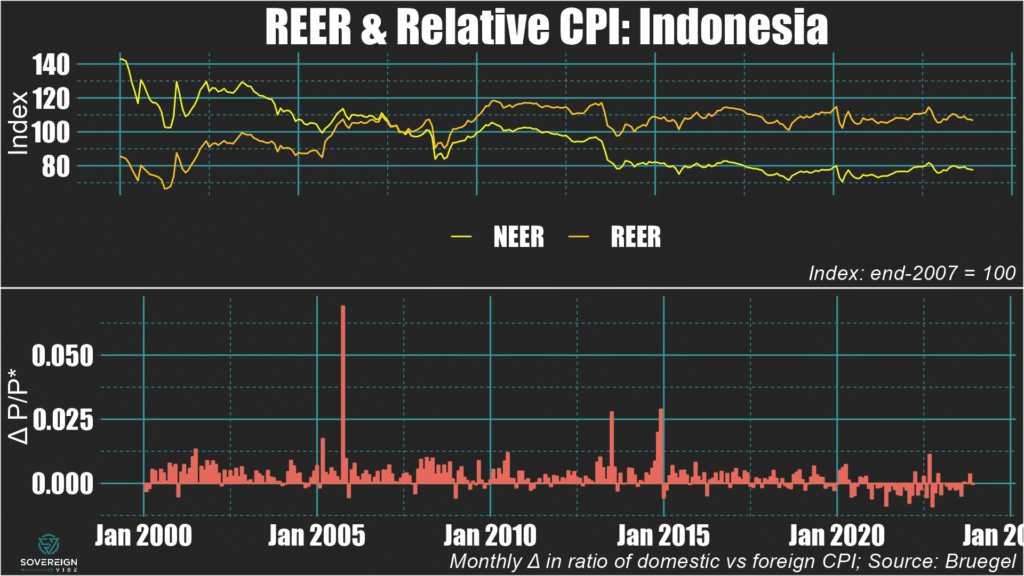 🇮🇩 Indonesia: The rupiah’s real exchange rate was fairly stable in 2023, registering a very modest decline in real and nominal terms alike. Inflation differentials were small and alternated between positive and negative over the course of the year, so had a negligible effect.